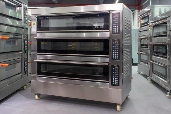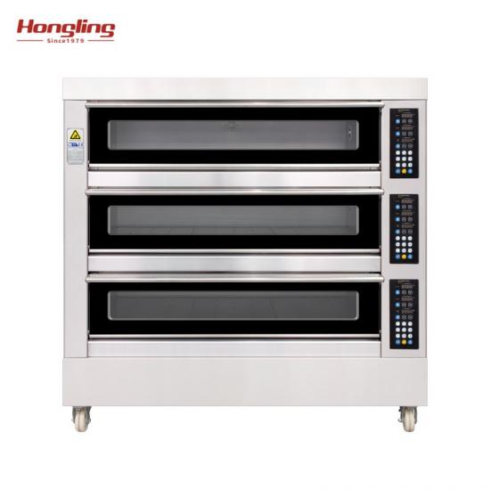 3 палубы 9 подносов электрическая духовка-это духовка подходит для небольшой пекарни или домашнего использования. Его лотки размеры 400*600 мм, 870*720*200 мм алюминиевый хромированный камеры, более однородным и лучше выпечки эффект. С управлением по таймеру, защита от утечки и перегрева/защита от перегрузки, соответствует стандартам CE. Импортированы швейцарский предварительное производственное оборудование обогреватели, а также самостоятельно производимых утеплителей. Верхний огонь 6 нагревателей, а нижний огонь 6 нагревателей в печи, гарантия на 10 лет.
