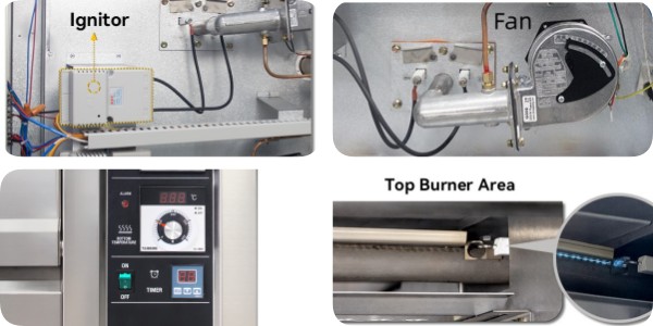 This gas deck oven is equipped with premium-grade controller, ignitor, timer, and fan, ensuring: